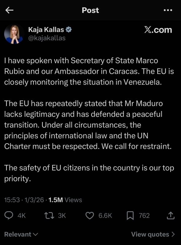 Perhaps Ursula Von Der Leyen and Kaja Kallas will send the Vice President of Venezuela a smart tactical sweater and a pair of black mountaineering boots - and then send him on a tour of the Bundestag, Sejm, and Parliament?