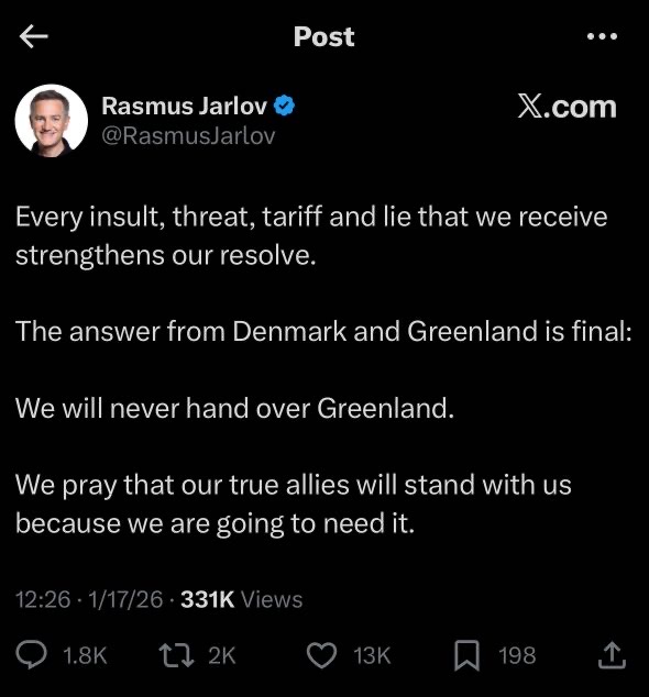 However, it seems the crazy bastards are ready to die for that island. Below is a screenshot of a post by Danish Conservative MP.